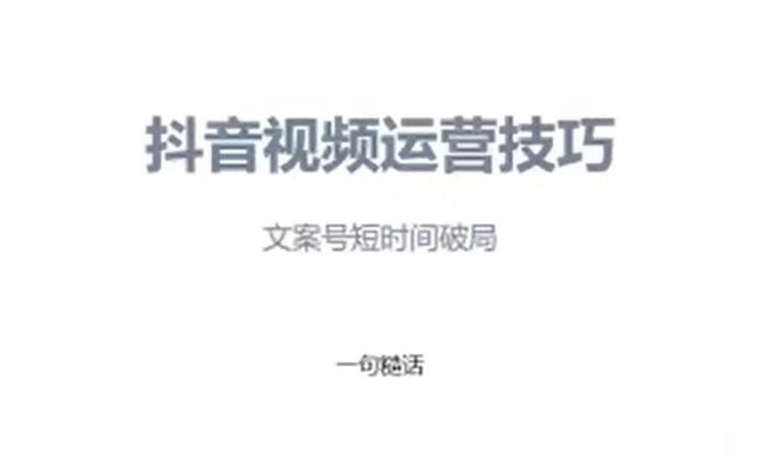 您现在所在位置: 首页 > 短视频课程>一句糙话《抖音文案号运营课程》
