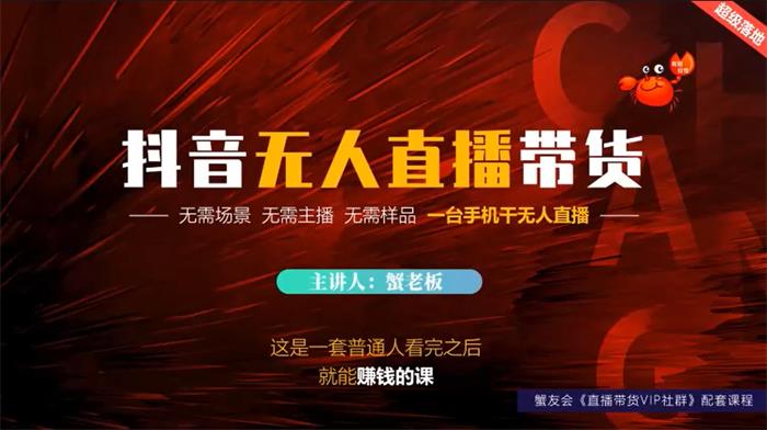 这是一套适合普通人的课程,看完之后就能赚钱,2022年最新抖音无人直播带货,无需场景,无需主播,无需样品,一台手机就可以干直播。真正的落地实操课程,听话照做就能赚到钱。抖音无人直播......