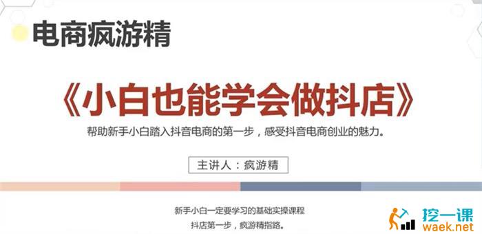 课程为2021年9月份抖音小店无货源课程,抖店新手实操班。课程主要内容包括:简单粗暴的选品玩法、复制批量扩大经营店群、抖音电商和传统电商的区别、新时代新机会新发展流量等。帮助新手小......