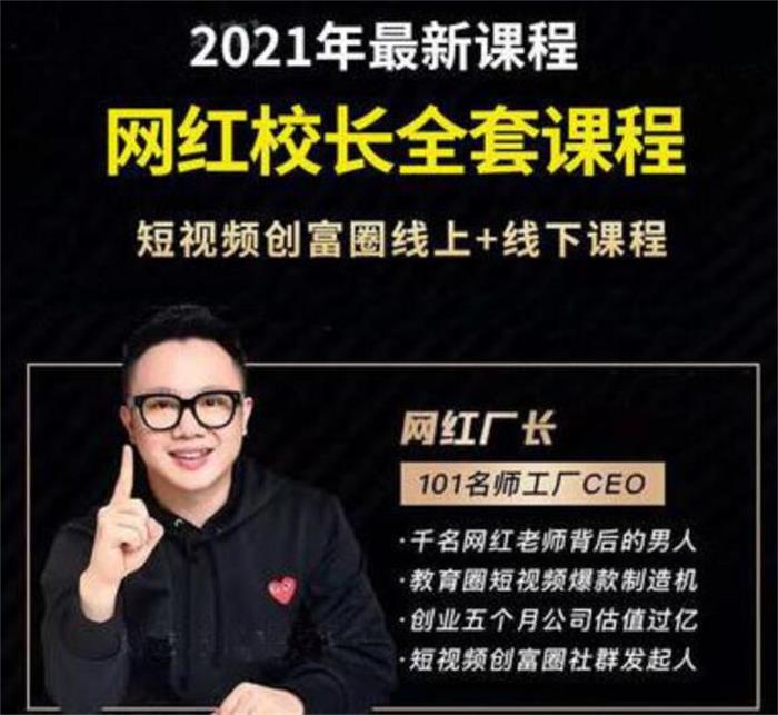 课程来自101名师工厂的网红厂长,2021短视频创富圈线上+线下课程全套课程,网红校长厂长抖音全套课程短视频创富圈直播知识博主运营教程课程,买流量步入造流量,教培机构利用短视频。内......