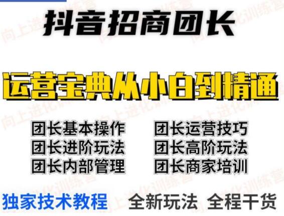 《抖音招商团长课程》从小白到精通,全新玩法,全程干货 课程内容目录: