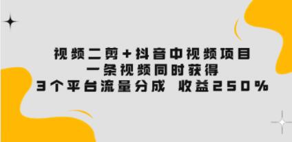 摇三网:《视频二剪+抖音中视频项目》一条视频获得3个平台流量分成 收益250% 课程内容目录: