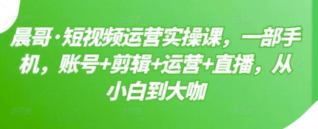 摇三网:晨哥《短视频运营实操课》一部手机,账号+剪辑+运营+直播,从小白到大咖 培训课程视频内容介绍: