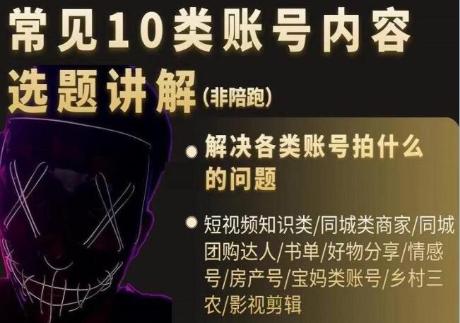 短视频《常见10类账号内容选题讲解》解决各类账号拍什么的问题 课程内容目录: