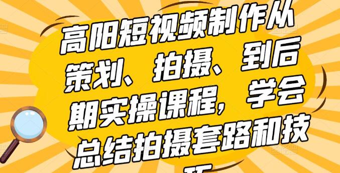 :高阳《短视频制作从策划、拍摄、到后期实操课程》学会总结拍摄套路和技巧 培训课程视频讲座内容介绍: