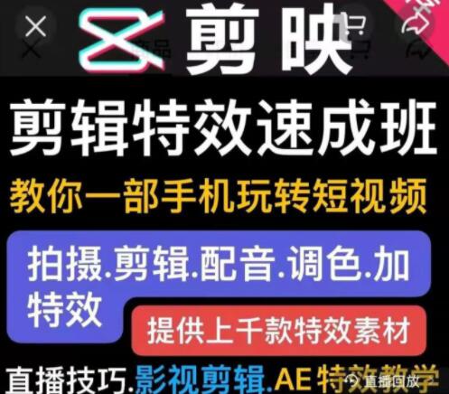 :剪映剪辑特效速成教程,教你一部手机玩转短视频+特效素材 培训课程视频内容介绍: